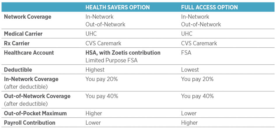 Zoetis offers the following medical plan options. For each of these options, in-network preventive services are always covered at 100%.