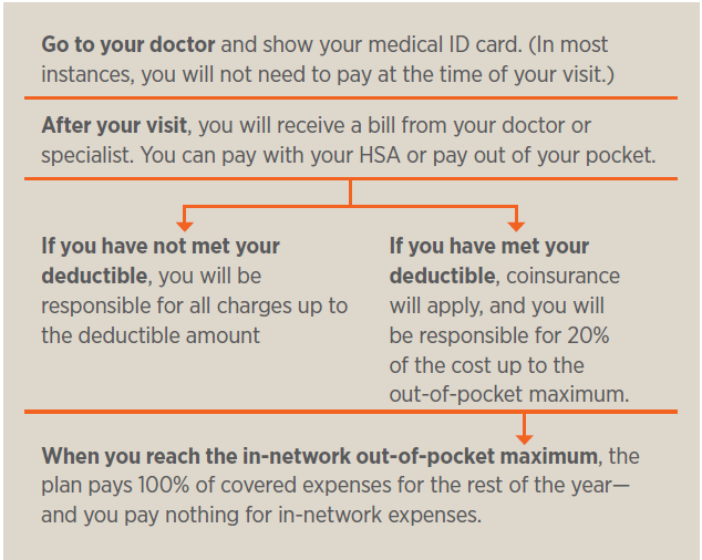 Here’s how the Health Savers Option with HSA works when you receive in-network care.