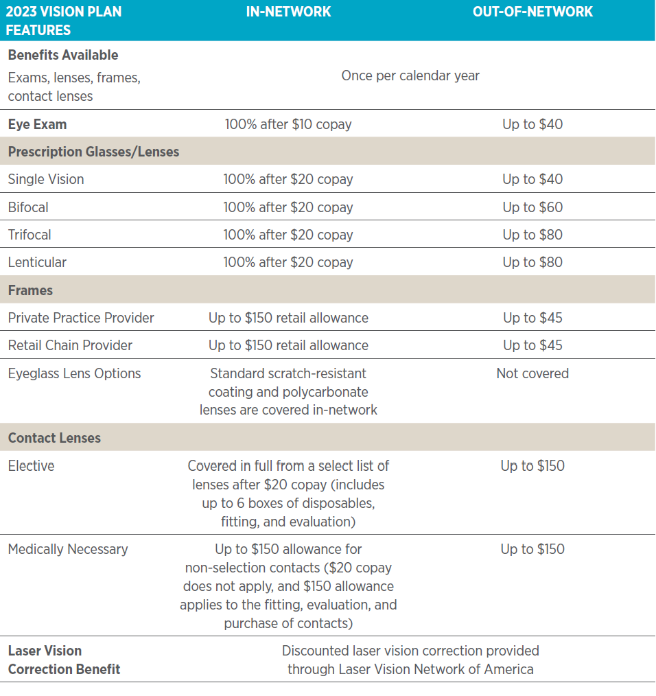 Note: The $150 retail allowance can be applied to the purchase of frames or non-formulary contact lenses. Members cannot receive both glasses and contacts in the same benefits plan year.